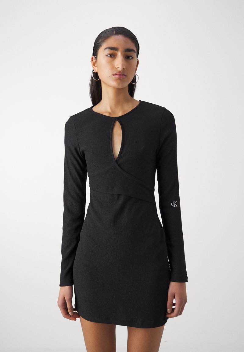 FRONT SPLIT WRAP DRESS - Shift dress - black