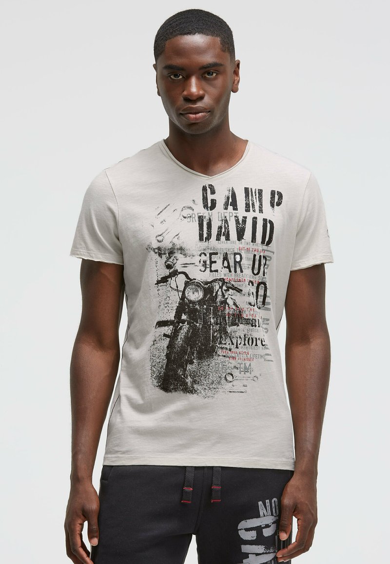 V-NECK IM USED LOOK MIT PHOTOPRINT - Print T-shirt - ash
