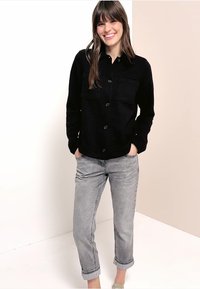 Shirt collar - Full-length button placket - Chest pockets - Summer jacket - black