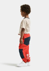 Flox are children’s trousers for everyday use and outdoor activities, made from soft bio-based SORONA® fabric. Windproof with an ergonomic cut, they feature an elastic waist with drawstring, elasticated leg ends, reinforced knees and back, practical side pockets, reflective details, and a name label for hand-me-downs or second-hand use.