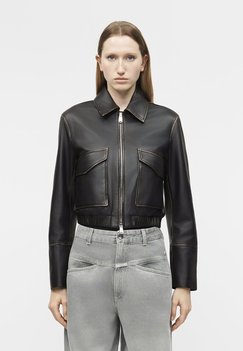 JACKET CROPPED - Leather jacket - black