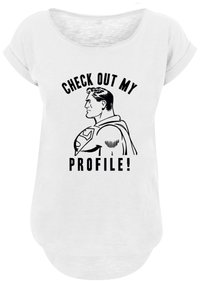 DC COMICS SUPERMAN LONG CUT 'CHECK OUT MY PROFILE' - Print T-shirt - white