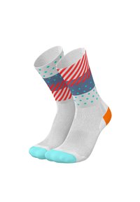 Exceptionally comfortable running and cycling socks made from ultralight Dryarn® microfiber - Designed in Germany, Made in Italy. With unmatched breathability for maximum performance. The wide, double-layered cuff prevents sweat and fits securely. Thin mesh structure on the instep ensures optimal ventilation. The integrated compression insert in the midfoot provides firm support. Reinforcements in the footbed, heel and toe areas, as well as in the Achilles tendon and heel regions protect sensitive spots. Experience top performance and comfort with these sports socks.