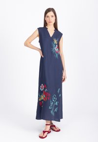 Newheart_outlinedLove & RosesREGULAR FIT - CONTRAST COLLAR SHORT SLEEVE MIDI DRESS . - Shirt dress - navy lime€120.00