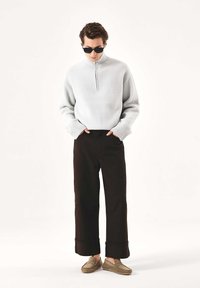 Taupe moccasins made of high-quality suede are semi-formal footwear that goes well with both casual and slightly more elegant smart casual outfits. The classic shape features distinctive stitching on the front, a slightly raised tip and a flexible sole. The comfortable lugged sole provides traction, making walking stable and confident. An interesting accent is the KAZAR logo embossed in leather on the side of the upper. The biggest advantage of the slip-on shoes is the ease of putting them on and taking them off.
