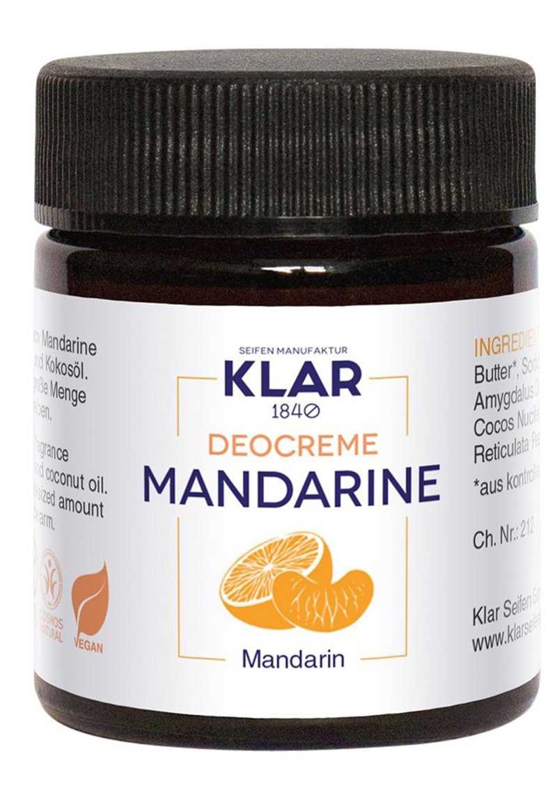 Klar's Mandarin Deodorant Cream neutralises unpleasant odours with a sweet, fruity fragrance and nourishes the skin with shea butter and coconut oil, while preventing perspiration and odour build-up. Used immediately after shaving, it is the perfect companion for your day. Give your skin a few days to get used to the aluminium-free formula. The initial change in perspiration and odour will soon subside. No additional fragrances, no preservatives, no silicones, no aluminium salts, no palm oil and no alcohol. This deodorant cream is therefore particularly suitable for sensitive skin.
