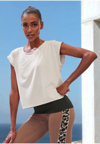 Basic T-shirt - beige schwarz