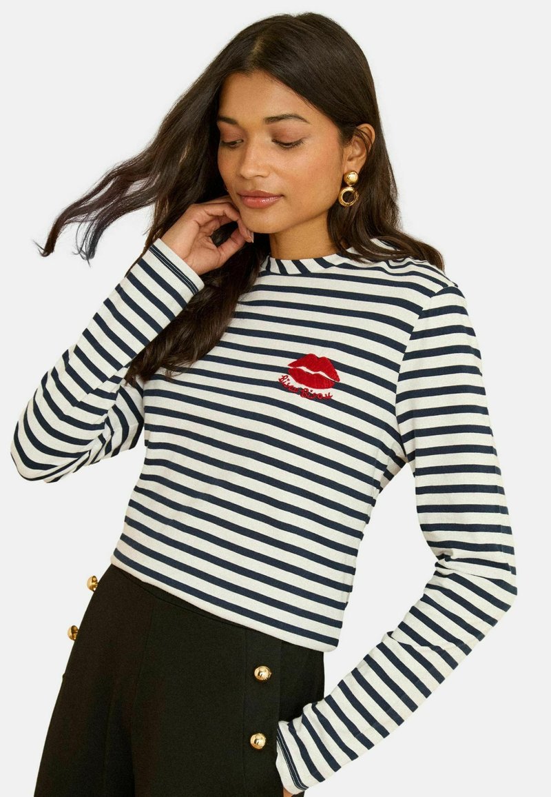 Current Selected colorColour: navy stripe tie back embroidered bisou