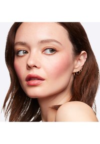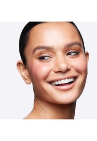·Tap excess powder and apply blush to skin using sweeping strokes and blend well.