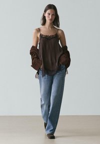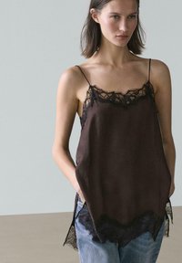 CAMISOLE WITH CONTRAST DETAIL - Top - dark brown