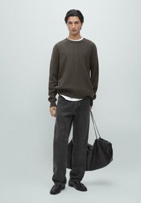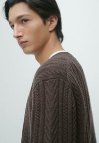 LONG SLEEVE WITH TEXTURED DETAIL - Jumper - dark brown