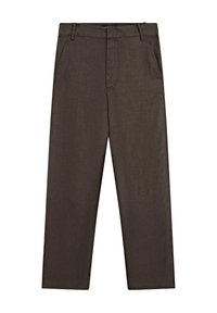 Zip fly and hook-and-eye fastening. Waistband with belt loops. Two side pockets. Two patch pockets on the back. Carrot fit trousers, wider at the hips and thighs, tapering progressively towards the ankle.