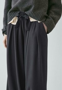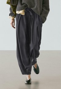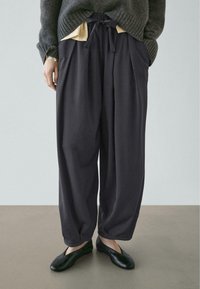 VOLUMINOUS WIDE-LEG PLEATED - Trousers - mottled dark blue