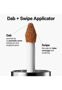 To cover hyperpigmentation and brighten the eye area, simply dab, stroke and blend. Dab the applicator tip onto desired areas. Stroke with the flat side to cover dark circles and visibly smooth skin tone. Blend into skin with fingertips, a brush or a sponge. For a softly contoured look, use a lighter shade to highlight and a few shades darker to contour. Apply the contour colour to the hollows of cheeks, sides of the nose and around the hairline for a natural look. Apply highlighter to the highest points of the face for an instantly lifted look. For full coverage, distribute the buildable formula across the entire face as needed for a natural finish.