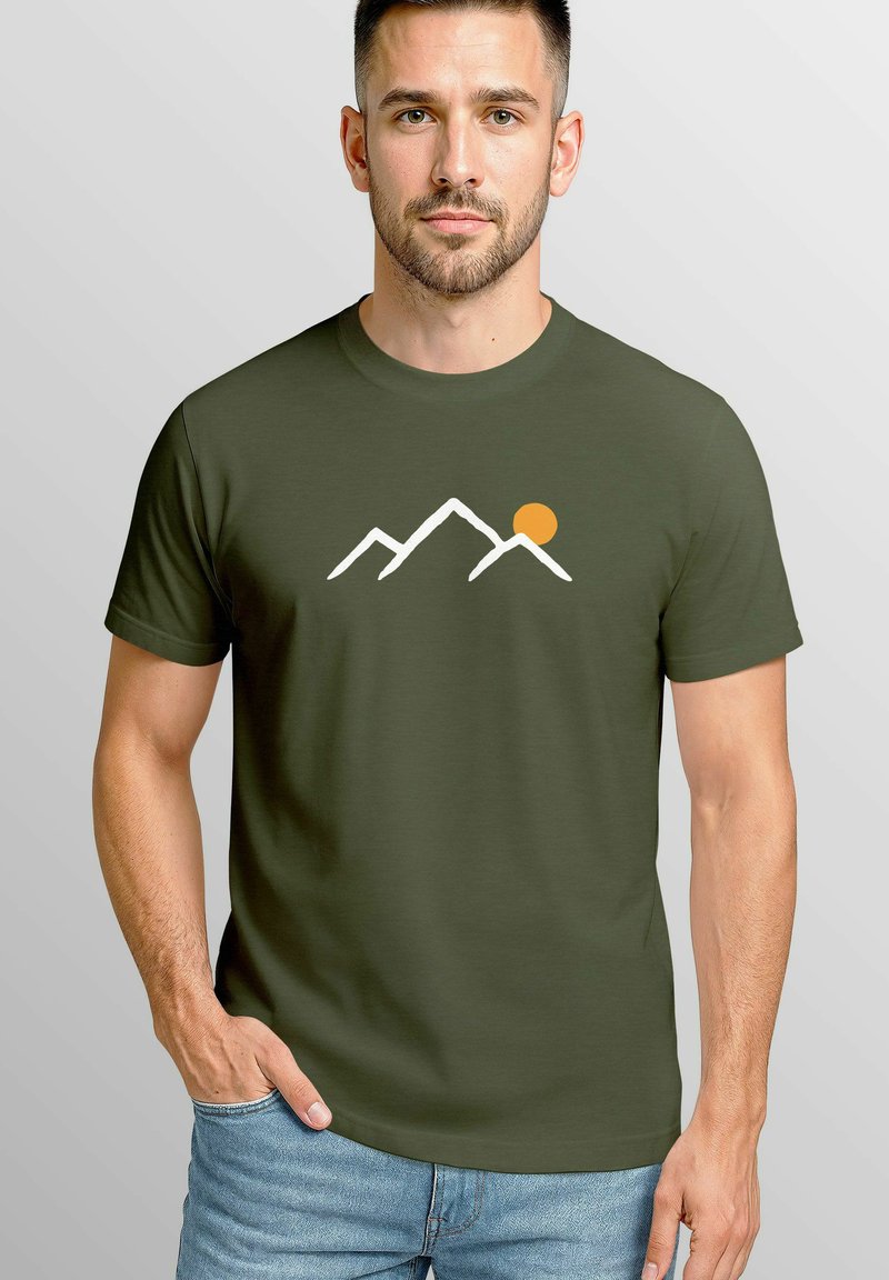 MIT MINIMALISTISCHEM BERGMOTIV OUTDOOR NATUR GRAFIK KURZARM - Print T-shirt - army