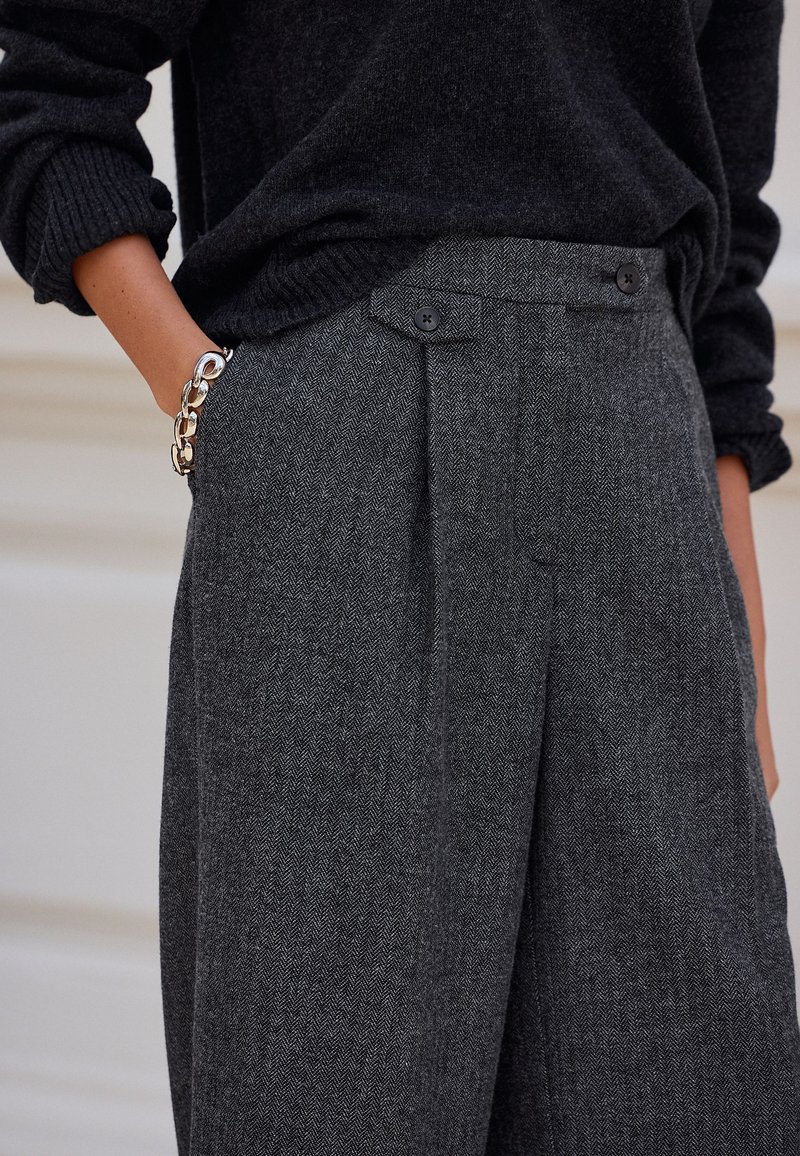 REGULAR FIT N PREMIUM WIDE LEG PLEATED - Suit trousers - grey