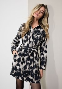 TALL FIT - LONG SLEEVE MINI TIE WAIST - Shirt dress - grey leopard print