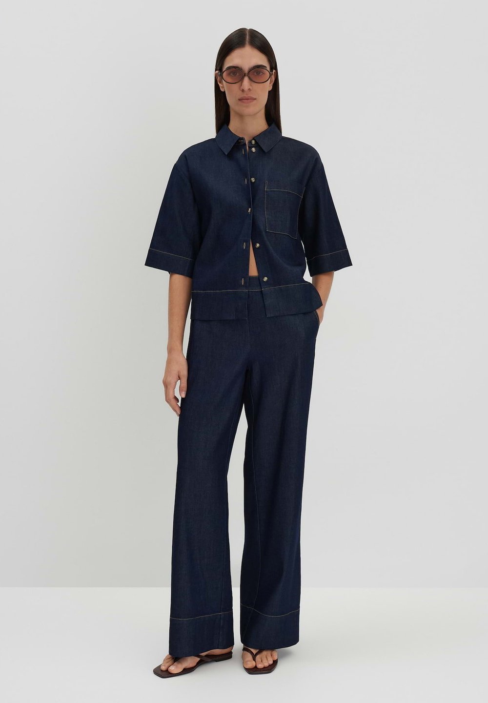 LOOSE FIT OVERCUT - Button-down blouse - rinsed dark blue