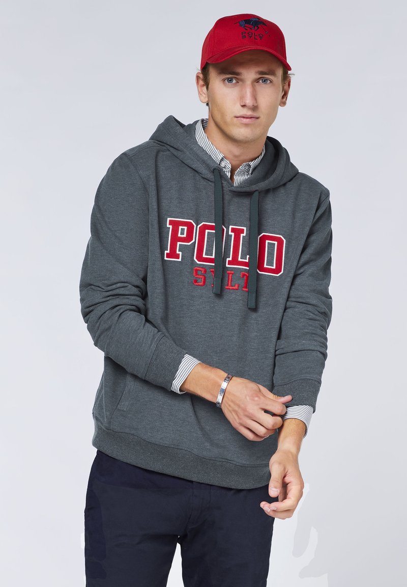 MIT LABEL SCHRIFTZUG - Hoodie - total eclipse melange