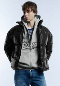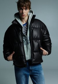 PUFFER - Faux leather jacket - black