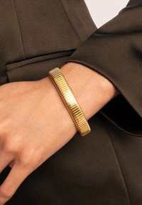 Das vergoldete Stahlarmband Big Belt ist ein Statement. Kombinieren Sie es mit mehreren dünneren Armbändern für eine einzigartige Note.