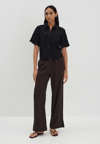 LOOSE FIT FLORAL DESIGN - Button-down blouse - black