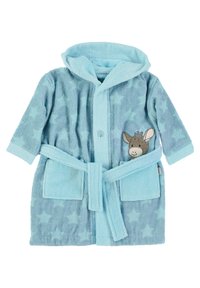 The Emmi bathrobe is a high-quality children's product specifically designed for the needs of babies and toddlers. With dimensions of 60x65x2 cm, it provides an ideal fit. The bathrobe is made from absorbent cotton and features soft terry cloth that ensures a pleasant feeling against the skin. The integrated hood protects the head from cold while the applied pockets offer additional storage space for small items. The embroidered donkey Emmi motif gives the bathrobe a child-friendly charm. Additionally, the bathrobe meets the OEKO-TEX Standard 100, which stands for freedom from harmful substances.