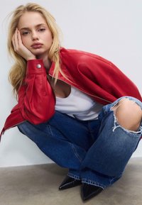 The size runs large for the colour dirty denim, so we recommend going one size down.
