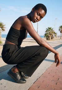WIDE LEG - Trousers - black