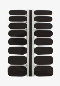 Remove the transparent protective film and the centre strip from the selected nail foil. This makes it easier to peel off the individual nail foils. Select the appropriate foil for the nail. Then attach them centrally to the nail and lightly press down at the bottom. The foil must not stick to the skin. Pull the foil upwards slightly so that it comes to lie smoothly on the nail. Then press the foil from the middle of the nail towards the edges to smooth out any air pockets. The easiest way to cut off the foil is with scissors just past the nail edge. Now use the nail file to file off the excess foil in line with the nail shape.