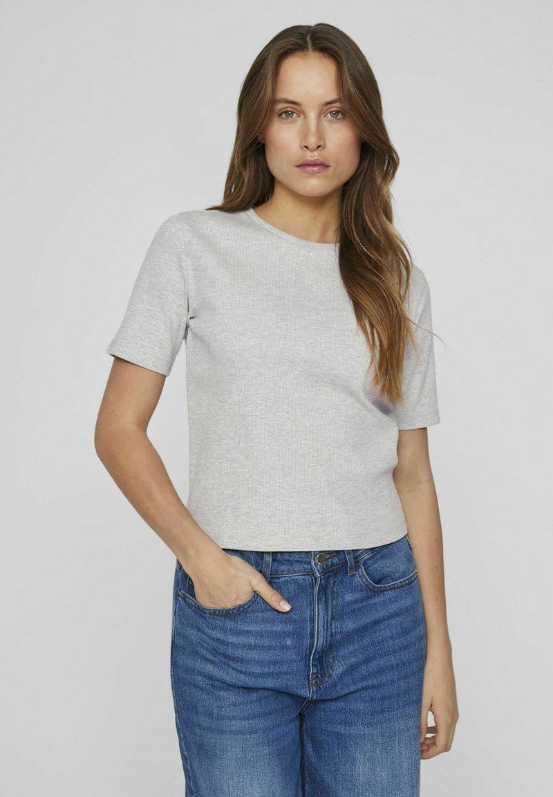 MIT KURZEN ÄRMELN RUNDHALS - Print T-shirt - light grey melange