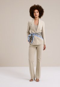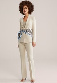 The size runs large for the colour beige, so we recommend going one size down.